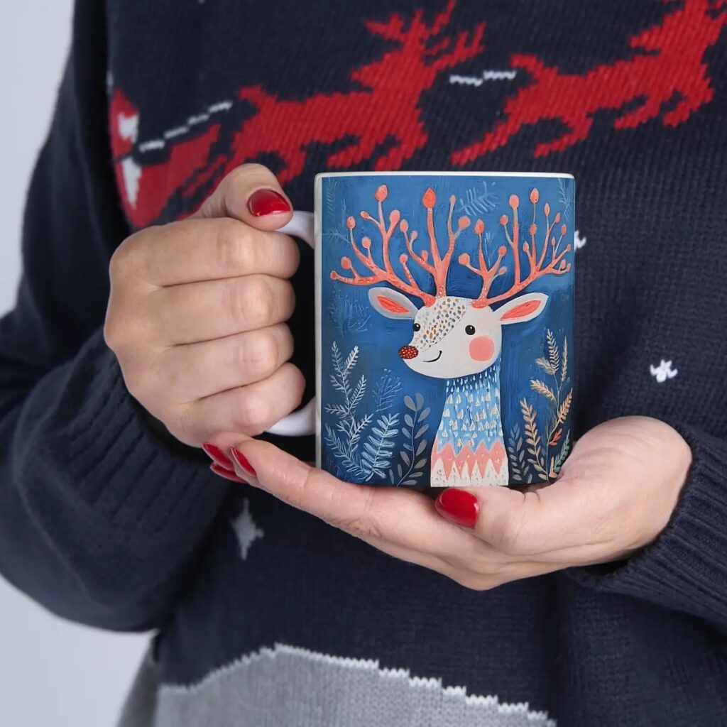 Weihnachten Tasse “Winterliches Rentier” – für gemütliche Momente!